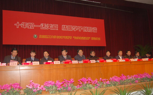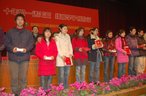 一般来说,腊八前后就是一年中最冷的时候,2007年1月26日恰逢农历腊月初八,在这个寒冷的日子里,北京理工大学中心教学楼一层大厅和报告厅内却洋溢着阵阵欢声和融融暖意,500名家庭经济困难学生代表济济一堂,参加了学校组织的2007年春节“向学生送温暖”活动。