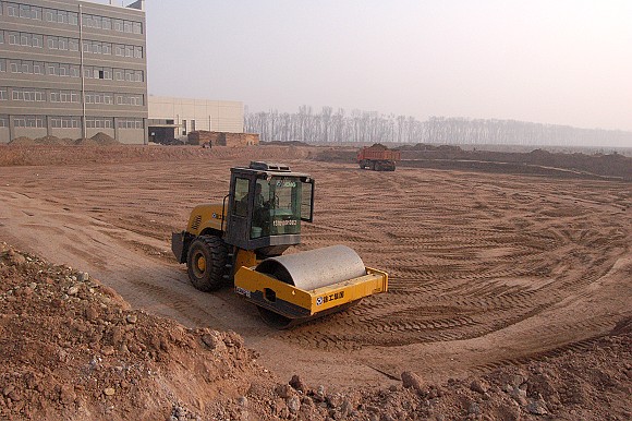 行政办公楼现场图,土方换填完成,平整场地完成,该做基础垫层。