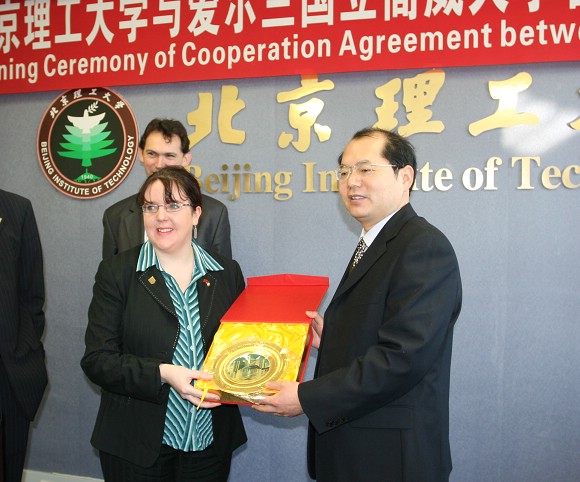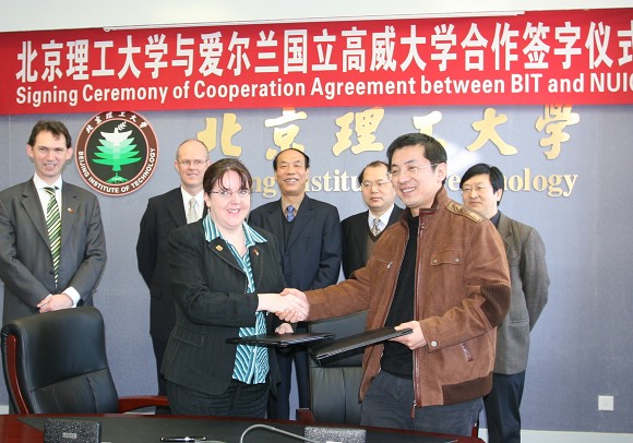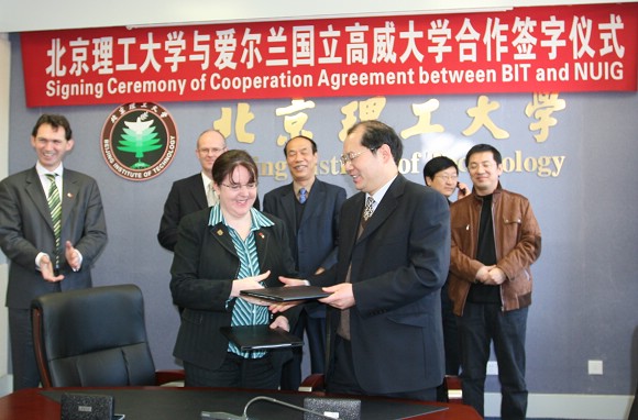 2007年3月5日上午,我校与爱尔兰国立高威大学在主楼二层会议室签署了《北京理工大学与爱尔兰国立高威大学学术合作协议》及《北京理工大学软件学院与爱尔兰国立高威大学工程学院学生选派谅解备忘录》。