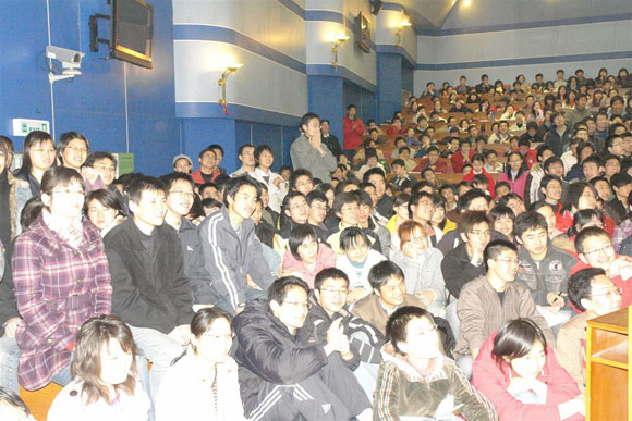 在长达两个小时的精彩讲解后,纪先生不顾劳累,与现场同学互动,回答他们提出的问题。他精彩巧妙的回答博得了阵阵热烈的掌声。
