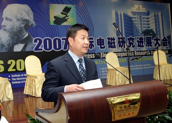 最后,此次PIERS 2007的主要组织者—我校长江学者特聘教授、电磁仿真中心主任盛新庆教授致辞。盛教授衷心欢迎与会代表访问北京理工大学,在学术和研究领域共同探讨,互相交流。晚宴在欢乐热烈的气氛中结束。