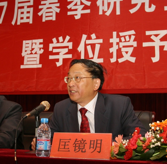 校长匡镜明教授在毕业典礼上致词。匡校长向2007届春季毕业研究生圆满完成学业表示热烈的祝贺。匡校长在讲话中回顾了学校几年的发展变化,赞扬了研究生同学们通过勤奋学习、刻苦钻研,在各个方面取得的优异成绩,同时匡校长充分肯定了研究生同学们在学校建设与发展中所做的贡献。匡校长以校长兼研究生院院长的身份向同学们提出几点希望,希望同学们树立远大理想,脚踏实地;要敢为人先、追求卓越,团结协作、构建和谐;要紧跟时代潮流,树立终身学习的思想观念。最后,匡校长讲到母校将永远是同学们奋发进取的坚强后盾,会一如既往的支持关心同学们,同时希望大家今后关心学校发展,为学校建言献策。