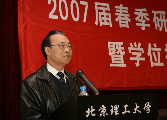 2007年4月9日上午,“北京理工大学2007届春季研究生毕业典礼暨学位授予仪式” 在7号教学楼报告厅隆重举行。出席会议的有校长兼研究生院院长匡镜明教授,党委副书记、副校长杨宾教授,党委副书记侯光明教授,副校长赵长禄教授,副校长孙逢春教授,党办、校办、研究生院、招分处等部门领导,各学院主管研究生工作副书记、主管研究生培养副院长,教师代表,以及2007届全体春季毕业研究生。