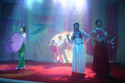 4月15日晚,以“弘扬社团文化,共创和谐校园”为主旨的珠海学院第一届社团文化节顺利开幕,学生社团联合会在报告厅启程“和谐中华,锦绣文化”之旅。