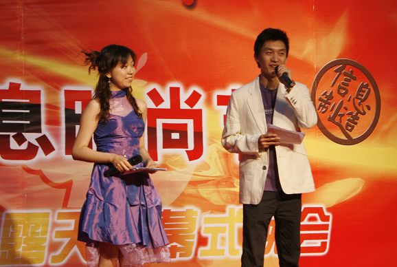 信息科学技术学院高路老师和学生会主席郝金坪同学担当晚会的主持