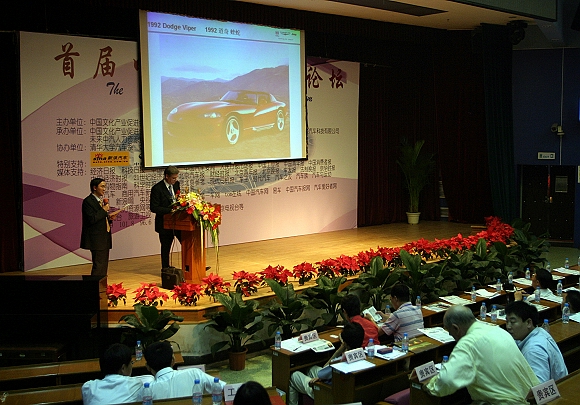 继汽车文化委员会在人民大会堂成立后,“首届中国汽车文化论坛”在北京理工大学中心教学楼报告厅隆重举行。中国汽车工程学会名誉理事长张兴业、东风汽车有限公司总裁中村克己、清华大学汽车系副书记帅石金、克莱斯勒集团东北亚地区副总裁罗威、中国汽车报社社长李庆文、福特汽车(中国)有限公司副总经理许国祯、中国汽车要闻出版人兼主编邢文军、清华大学教授黄继英、德国大众汽车原公共关系总监约翰∙博克曼∙尤尔根等分别做了精彩报告。