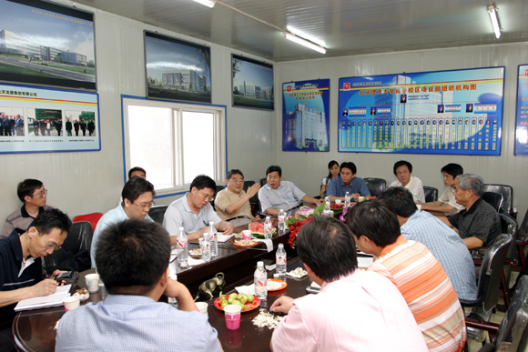 参观结束后,焦文俊书记一行与良乡校区工作人员进行了座谈。良乡校区基本建设办公室主任郭守刚介绍了工程进展情况,综合办公室主任刘影秋汇报了二、三期购地情况。李和章副校长强调要本着精简、精干的原则,进一步配备好良乡校区管委会下属四个办公室的组成人员,抓紧时间做好新生入住前的各项准备工作。