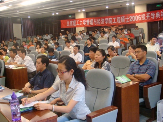 首先管理与经济学院朱东华副院长代表校长匡镜明致欢迎辞,对06级新生的到来表示衷心的祝贺,接着介绍了管理与经济学院工程硕士的发展历程以及取得的可喜的成果,希望同学们努力实践“团结、勤奋、求实、创新”的学风,勤奋学习,专心工作,续写北理工新的辉煌!