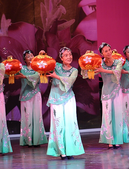 【图】我校退休同志表演的舞蹈“紫荆花开庆回归”受到好评