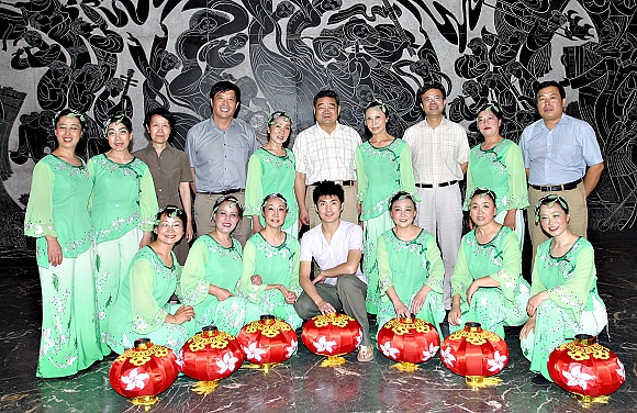 演出结束后,焦文俊书记、侯光明和赵平副书记、李和章副校长与我校参加演出的退休老同志合影留念。