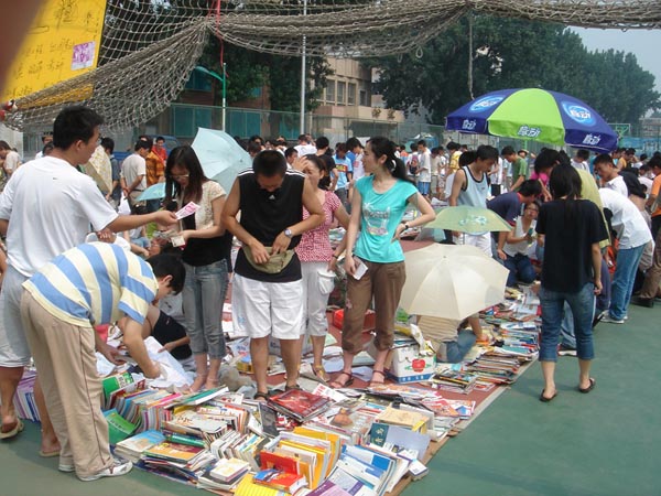 在活动过程中,校学生会特别设立了咨询处、找零处、捐书处、广播处等,联系了废品公司方便同学。在两天活动中,无论烈日炎炎还是倾盆大雨,他们都坚守岗位,他们的辛勤劳动令同学感动。