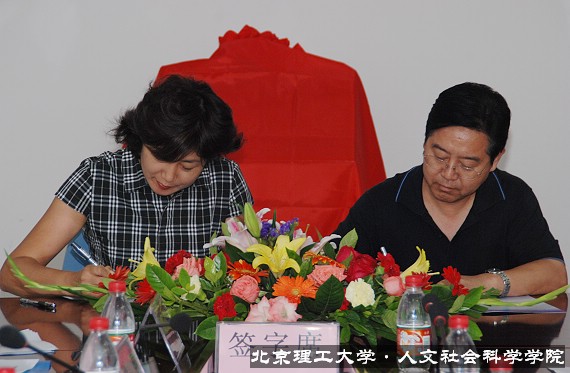 天桥街道办事处主任安朝晖与北京理工大学人文社会科学学院院长张红峻签订“街校携手共建 青春共促和谐”协议书。