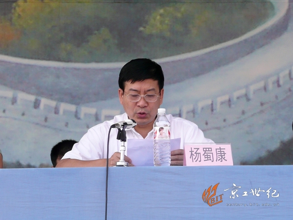 校纪委书记杨蜀康教授在开训典礼上发表重要讲话。杨书记指出,在大学生中开展军训,是《国防教育法》、《兵役法》的规定,接受军事训练是每个大学生必须要履行的义务。通过军训可以全面提高大学生的素质,增强大学生的使命感和责任感,特别是在大学生良好作风的养成、意志品质的锤炼以及军事技能的提高方面有着其它形式的工作所不能取代的突出的作用和功能!参加军训的时间虽然是短暂的,但是带给大学生们的却是终生受益的精神财富。八达岭学生军训基地是北京市军训办定点学生军训单位,具有较好的软硬件环境,基地领导也高度重视我校军训工作,精心组织,周密安排,全力保证了我校军训工作的正常进行,希望全体带队干部和参训学生珍惜难得的机会和条件,全体带队干部要和66081部队教官密切配合,通力合作,保证把军训的各项工作落到实处。最后,杨书记预祝全体承训官兵和参训同学取得优异成绩,军训工作取得圆满成功。