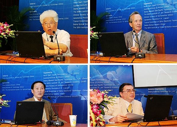 开幕式后进行了大会报告,周立伟院士(左上) ,柏林工业大学韦伯教授(右上)、兵器工业集团205所向世明研究员(左下)和俄罗斯伯拉柯夫博士(右下)报告了光电子探测与成像及相关领域的前沿发展情况,深得与会代表的欢迎。