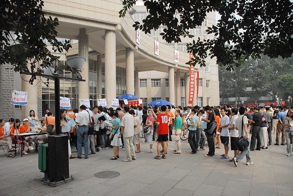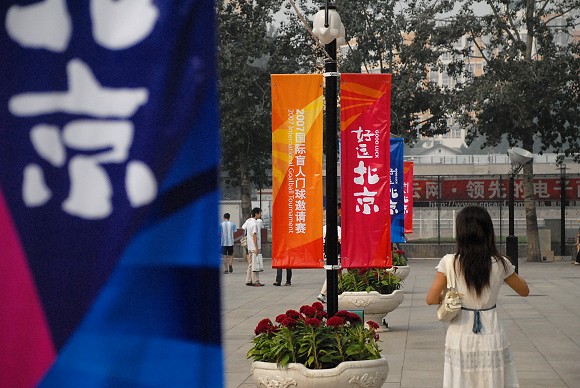 9月12日上午,北京理工大学一年一度的研究生迎新工作在中心教学楼前进行,与往年不同的是,此次迎新工作适逢“好运北京”国际盲人门球邀请赛即将在学校体育馆举行,安宁、有序、和谐的场面在校园内随处可见。