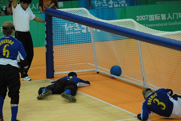 在16日下午17:00点与瑞典队争夺本次邀请赛冠军的比赛中,中国队不畏强手,超强发挥,以8:3战胜北欧劲旅瑞典队,荣获“好运北京”2007国际盲人门球邀请赛冠军!!