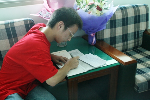 19日上午8点,校团委副书记代方震老师,生命学院党委书记李兰东老师,生命学院副院长、副书记周连景老师,以及俞锦声同学的辅导员、班主任和班级同学,来到空军总医院,一起守候在俞锦声同学身边,与他共同度过一上午四个小时的捐献过程。北京市红十字会秘书长刘燕君,中国造血干细胞捐献者资料库北京分库的金辉主任、谢宝树副主任也都亲自来到捐献病房,对俞锦声同学进行了慰问和鼓励,充分肯定了他救死扶伤的高尚举动。