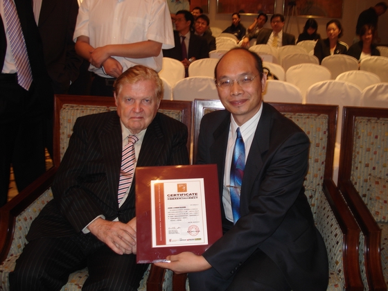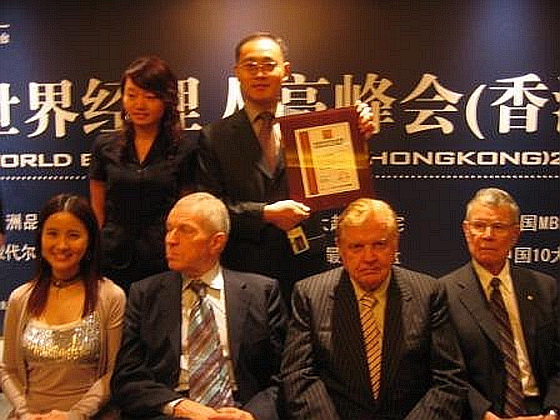 在2007年世界经理人高峰会(香港)上,1999年诺贝尔奖学金获得者、世界经理人集团董事会主席、欧元之父为我校代表工商管理系刘平青主任颁发“2007年中国最具影响力MBA”证书。
