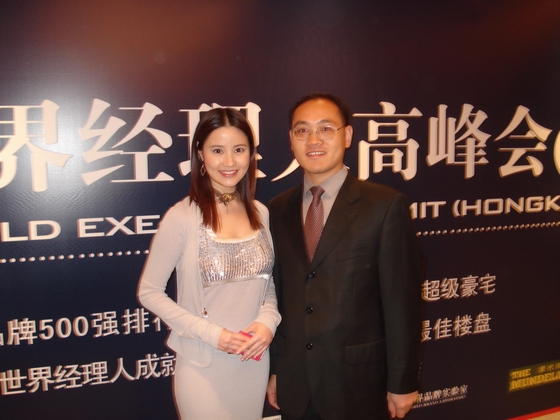 大会司仪、凤凰卫视主持人江欣荣小姐与刘平青主任合影留念