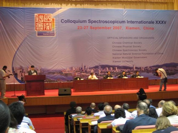 2007年9月24~27日,“第35届国际光谱会议”在厦门人民会堂举行。这是作为世界分析谱学界顶级峰会的国际光谱会议首次在中国、第三次在亚洲召开。来自世界40多个国家和地区的600多名科学家参加了本届会议,126位世界知名科学家作了分会报告,其中有六位该领域世界顶级科学家作了精彩的大会报告。