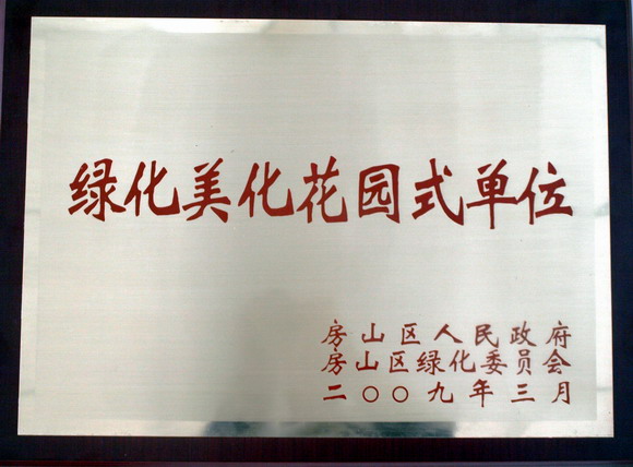 "首都绿化美化花园式单位区级先进集体"奖牌