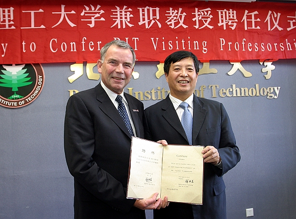 我校副书记侯光明为Volker Trommsdorff教授颁发了聘书,佩戴校徽,并赠送纪念品。兼职教授聘任仪式由人事处副处长赵文祥主持。管理与经济学院应用经济系主任何海燕教授介绍了Trommsdorff教授的简历。侯光明和李金林院长分别代表学校和学院向Trommsdorff教授受聘我校兼职教授表示祝贺,希望Trommsdorff教授能够为两校科研合作做出更大的贡献。Trommsdorff教授本人对受聘为我校兼职教授表示感谢,并表示将会为两校合作、为北京理工大学的学科建设和发展贡献自己的力量。参加聘任仪式的还有管理与经济学院应用经济系副主任孟凡臣教授、德语系副主任刘文杰副教授和DAAD专家Christopher Pascal Dege先生,以及管理学院教师和学生代表。聘任仪式结束后,Trommsdorff教授为管理与经济学院学生做了精彩的学术报告。