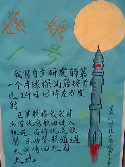 宇航学院莘莘学子在得知“嫦娥一号”发射成功以后,不少同学写下了自己的感想,现摘录部分,表达宇航学子的美好祝愿: