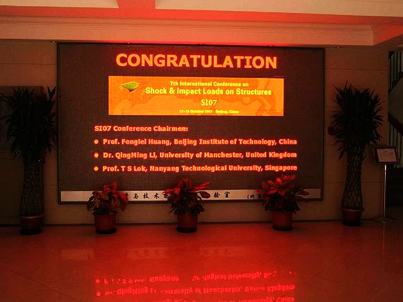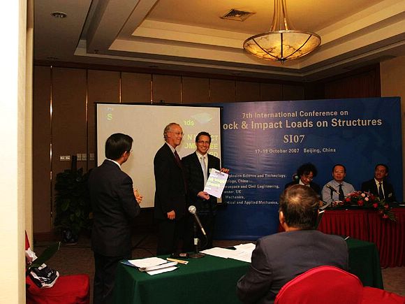 由北京理工大学爆炸科学技术国家重点实验室、英国曼彻斯特大学和中国力学学会爆炸力学专业委员会共同主办的第七届国际结构冲击与碰撞会议(7th International Conference on Shock and Impact Loads on Structures -SI07)于2007年10月17日-19日在北京皇苑大酒店胜利召开。会议主席是北京理工大学爆炸科学与技术国家重点实验室的黄风雷教授,联合主席为英国曼彻斯特大学机械、航空与土木工程学院Qingming Li博士和新加坡南洋理工大学的T S Lok教授。