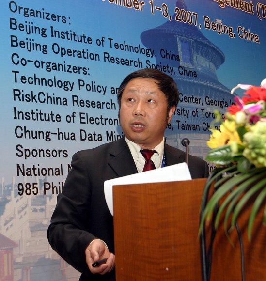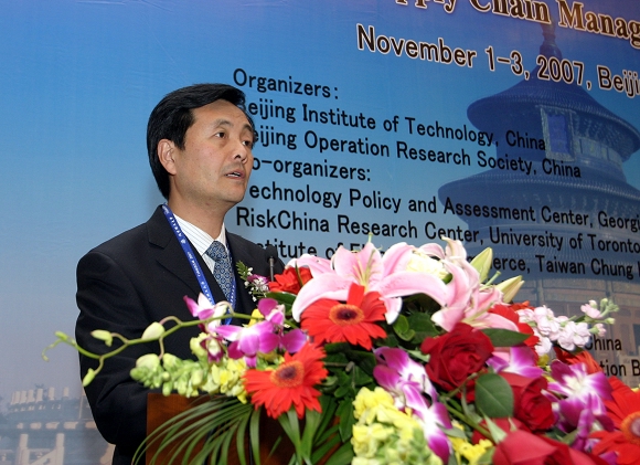 由北京理工大学管理与经济学院和北京运筹学会主办,美国佐治亚理工学院技术政策与评价中心、加拿大多伦多大学风险管理研究中心、台湾中兴大学电子商务研究所和台湾中华资料采矿协会共同协办的“2007年技术创新、风险管理暨供应链管理国际研讨会”于2007年11月1日在北京友谊宾馆召开,来自美国、 加拿大、马来西亚、巴基斯坦、德国、台湾地区的近30名学者和来自国内的150多名学者参加了大会。参加开幕式的还有北京理工大学副校长赵长禄教授、国家自然科学基金委管理科学与工程处刘作仪处长、北京理工大学国际交流合作处王庆林处长、科技处陈鹏万副处长、管理与经济学院分党委书记李波、副院长朱东华、纪新华等。