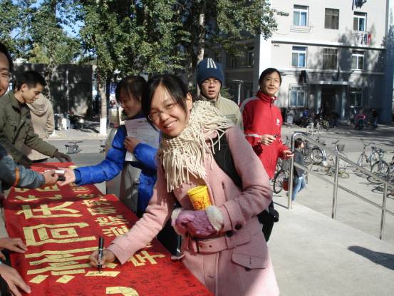 为庆祝“嫦娥一号”顺利升空,宇航学院科普宣讲团于10月31日在新食堂门口举行主题为“嫦娥奔月夙梦圆,九洲同庆壮国威”的签名活动。活动期间,同学们踊跃签名,气氛热烈。