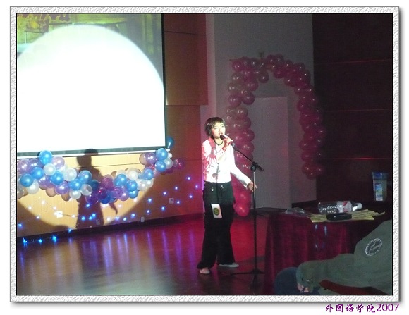 来自13110701班的张丹第五个出场,她带来的是一首JAZZ风格的英文歌曲“I hate myself for loving you”。动感的音乐,动感的舞步,动感的声音充分展现了外国语学院青春的魅力。