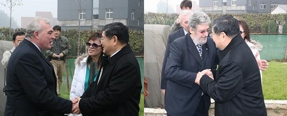 我校与西班牙马德里理工大学自2005年8月开始在协议框架下双方开展了一系列的卓有成效的交流活动。这是焦书记和尤赛达校长(左图左)在协议签订以来的第二次见面,而马德里理工大学的负责国际交流的校长助理安赫教授(Angel Alvarez,右图左)在两年中多次访问我校,早已成为我校的老朋友。
