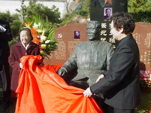 谢觉哉同志夫人、老红军王定国,徐老孙女徐禹强为徐特立铜像揭幕