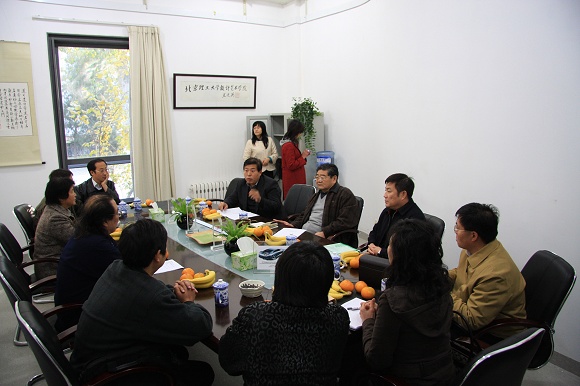 参观完毕全体领导于学院会议室召开预评估检查通报会议,在听取李连书记、张乃仁院长的汇报后,李和章校长、赵长禄校长先后对学院的迎评工作提出了宝贵的意见,随后焦文俊书记总结讲话,首先他对学院的迎评工作给予了高度赞扬,并指出了在汇报材料、讲解过程等方面的不足之处,提出要抓住理工院校艺术类专业的定位和重要意义,将设计艺术学院的风采很好的展示在评估专家面前。