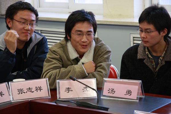 最后,专家们询问同学们希望学校做哪些方面的努力和改善,以给同学们提供更好的学习和生活环境。来自管理学院国贸专业05级的王未佳同学说,我们学校一直秉承踏实、务实的作风,做的多、说的少,希望学校能加强宣传,让更多的人了解北京理工大学。