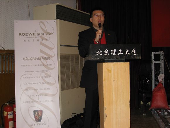 北理工做为上汽集团北京高校宣讲会的第一站,得到了集团公司极大的重视。上汽集团新上市的荣威轿车也成了本次招聘会最吸引眼球的部分,招聘会场巨大的荣威轿车的海报及众多展架,为荣威轿车所属的乘用车分公司赚足了人气。