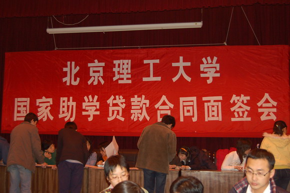 2007年11月23日、25日,我校学生工作处与中国银行科技会展中心支行在中关村校区、良乡校区举行了两场国家助学贷款签约仪式。鉴于今年的实际情况,2004-2006级本科生和研究生在中关村校区签约,2007本科生在良乡校区签约,学生工作处分别在两个校区举行了签约仪式。我校共有732名学生通过了中国银行国家助学贷款的资格审核,顺利签约,合同总金额为1482.35万元。