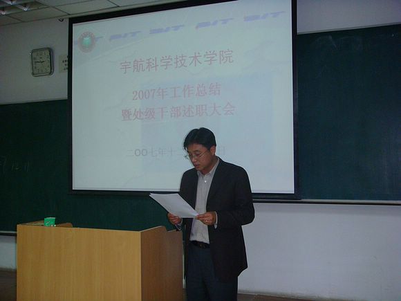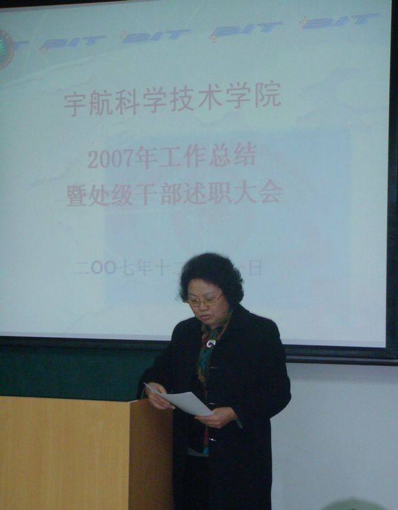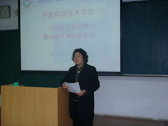 2007年12月11日下午,宇航科学技术学院召开2007年工作总结暨处级干部述职大会,党委组织部副处级组织员李灵出席了大会。
