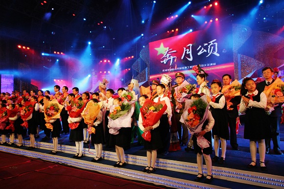 作为表彰大会和文艺演出的协办单位之一,在时间短、任务紧的情况下,我校师生以饱满的热情投入工作,积极进行协助和配合,充分展现了我校师生的精神面貌。艺术教育中心的师生们参与演出了部分节目;上千名学生观众热情地观看了演出,并作为群众演员参与大合唱,台上台下形成了良好的互动,演出现场气氛十分热烈;80名学生志愿者的全力支持,保障了演出顺利进行。