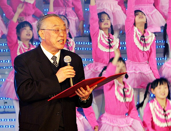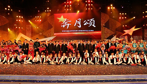 荣获“首次月球探测工程突出贡献者”称号、绕月探测工程总指挥栾恩杰深情激昂的诗朗诵《仰望星空》把演出推向了高潮。