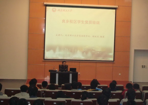 12月22日上午,北京理工大学党委副书记、副校长杨宾在良乡校区综合楼报告厅先后对07级全体班长、团支书和07级学生党员进行了培训,培训以杨宾副书记主讲的方式进行,在两场培训中,杨宾副书记对07级党员及干部提出的问题进行了回答和点评。良乡校区学生办公室郭彦懿、邹锐、丛磊,良乡校区后勤保卫办公室韩冬,化工与环境学院孟祥、人文社会科学学院贾利军参加了培训会。