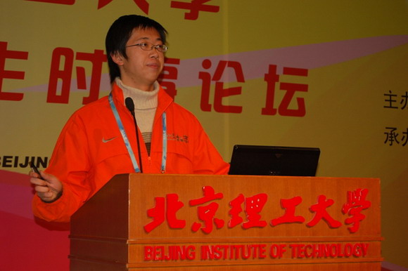 本届论坛以“学习十七大精神”为主线,共有210余名学生围绕“和谐社会”、“科学发展”、“生态文明”、“朝伊核问题”、 “好运北京奥运测试赛”等主题,表述了自己的观点。今年九月份的国际盲人门球邀请赛可谓是北理工、北京、乃至全中国的一件大事了,第一个走上讲坛的选手是带着灿烂微笑的张鹏,他的题目是《志愿者的微笑》,他用自己的亲身经历讲述了自己对志愿者精神的理解。