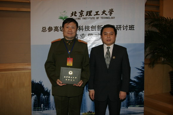 北京理工大学校长胡海岩为每一名培训学员颁发了结业证书并发表了热情洋溢的讲话。胡校长指出,“总参科技创新战略研讨班”在我校举办,是总参谋部贯彻落实胡锦涛关于“学理论,学科技,学管理”,提高总参人才队伍建设水平的具体行动,也是“军民结合、寓军于民”,依托国民教育培养军事人才的有益探索。此次研讨班的举办进一步加深了我校与总参的交流与合作。希望大家在百忙之余能经常来北京理工大学作客,在学科建设、科学研究、人才培养等各个方面开展更广泛更深层次的合作。