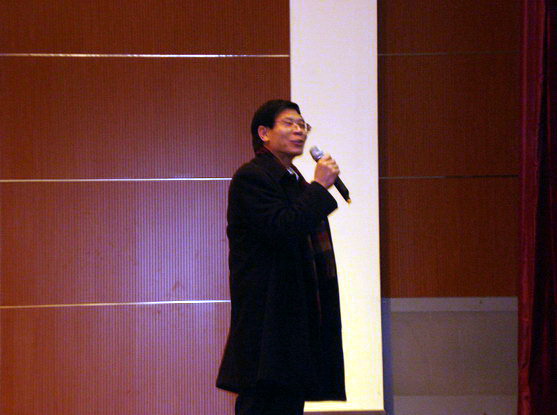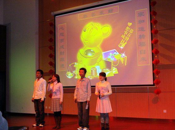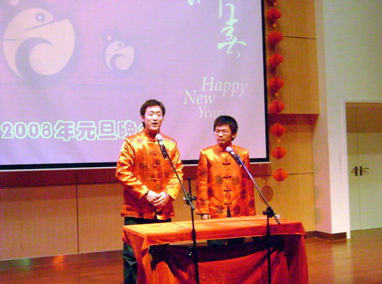 良乡校区2007级新生精心准备了此次新年晚会,他们自编自演的话剧、相声、舞蹈、吉他弹唱,充分展现了宇航学子的风采。焦清介老师和李东光老师表演的京剧《我们是工农子弟兵》,以及分团委老师表演的配乐诗朗诵《再别康桥方言版》,更是将晚会推向了高潮。