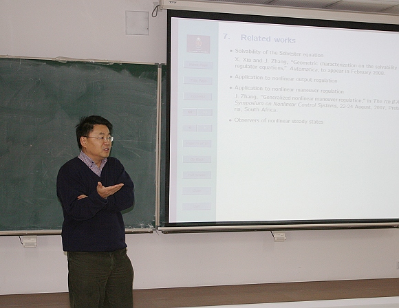 2007 年12月26日,由我校研究生院学科建设与学位办公室和信息科学技术学院联合举办的“21世纪学科前沿”系列学术报告:“Steady States of Nonlinear Systems/非线性系统的稳定状态”在我校研究生楼举办。报告人为南非工程院院士、比勒陀尼亚大学教授夏小华博士。