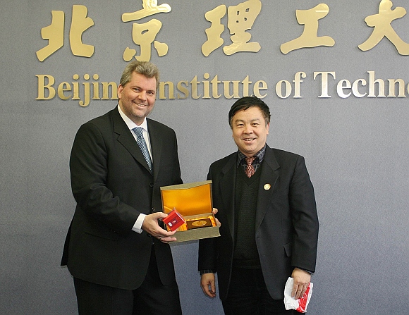 党委副书记、副校长杨宾向Retzlaff-Schroeder先生赠送纪念品