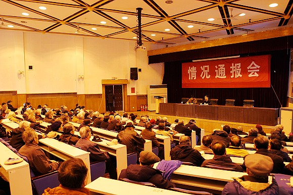 校长胡海岩向离退休干部通报了学校2007年的主要工作情况,有200余位离退休干部参加了通报会。