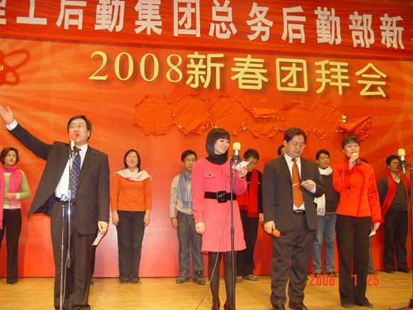 残雪犹挂昨夜松,京工却现不寒冬。共聚齐送金猪去,和谐欢庆迎玉鼠。后勤集团总务后勤部一年一度的新春联欢会于2008年1月25日下午三时半,在中心教学楼一层报告厅隆重召开,整台晚会节目精彩纷呈,四位主持人妙语连珠,台上台下欢呼雀跃,所有参与者都融入一片欢乐和谐的气氛中。