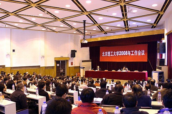胡海岩校长作了题为《落实科学发展观,构建和谐校园,实现学校又好又快发展》的工作报告。在报告中,胡校长首先对我校高质量通过教育部本科教学工作水平评估、2007级本科新生顺利入驻良乡校区、圆满完成“好运北京”奥运测试赛、学科建设取得一定成绩、进一步加强高水平人才队伍建设、教育教学工作注重稳定规模提高质量、增强自主创新能力不断提高科研水平、确保基本建设进度、大力推动和谐校园建设、坚持以党的建设和思想政治工作为保证等十个方面我校2007年的主要工作进行了回顾。其次,他客观分析并严肃指出了学校目前面临的困难和存在的问题。针对这些问题,胡校长提出了我校2008年的工作思路:一是要进一步解放思想、科学发展,二是要进一步加强学校内涵建设,三是要进一步加强干部队伍作风建设。