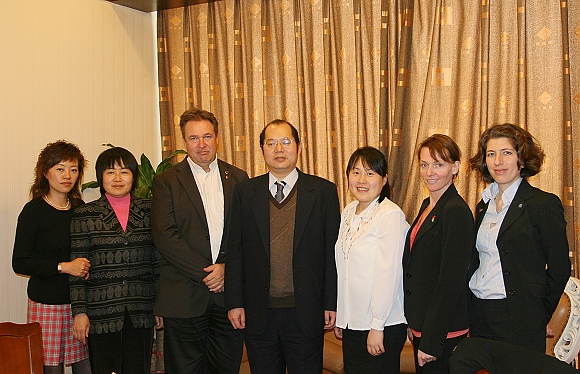 2008年3月11日上午,瑞典皇家理工大学(KTH)代表团访问我校,代表团成员包括化工学院Anders Hult教授(左三),化工学院国际项目官员Nina Gemvik女士(右二),信息通信与技术学院国际项目官员Cristina La Verde女士(右一)以及校长办公室国际项目官员何颖方女士(右三)。